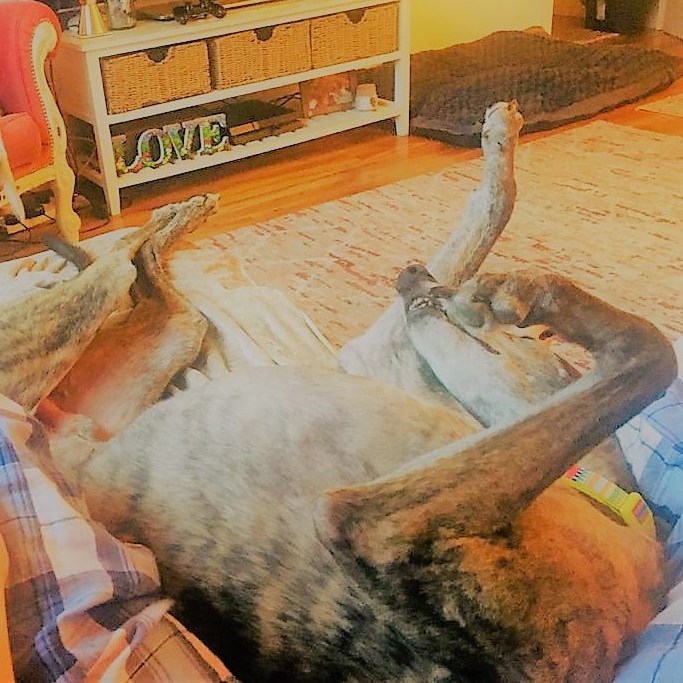 Lastly, we arrive at the concept of “roaching”. If you have never seen this phenomenon before, then you are truly missing a great sight! This amusing spectacle is when greyhounds decide to goofily lay on their backs, with all four legs up in the air, darting out at ridiculous angles. Often you will also find that their tongues are dangling out of their mouths rather attractively and that they will fall asleep in this position, often remaining this way for even hours on end! Research suggests that this term originates from the resemblance of a dead cockroach (classy!), as they can be found lying on their backs. Regardless, this fabulous act, which is fairly unique to the greyhound breed, is simply adorable in a silly, indescribable way. Just another reason to be entertained by these majestic (alas, goofy) creatures!