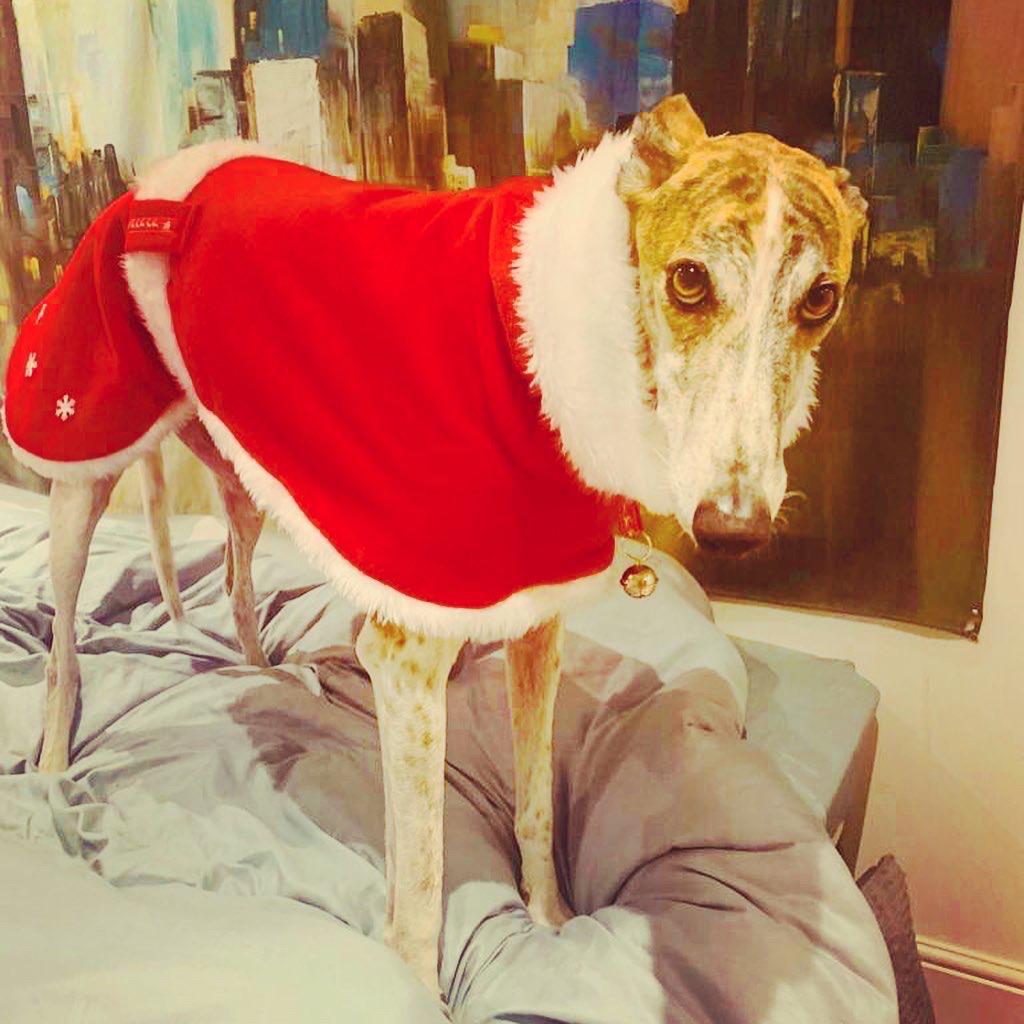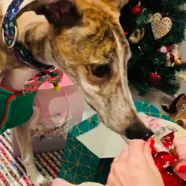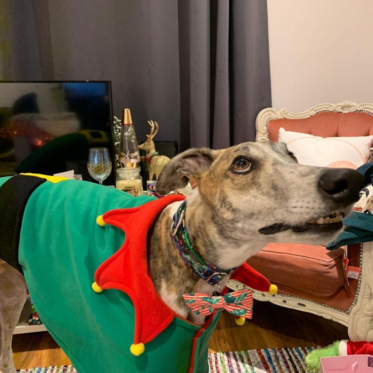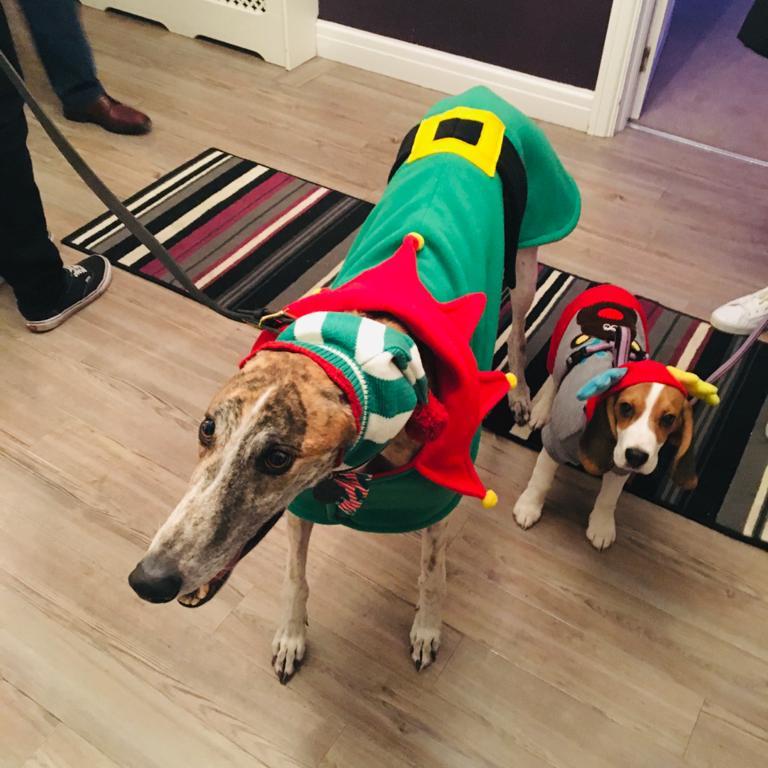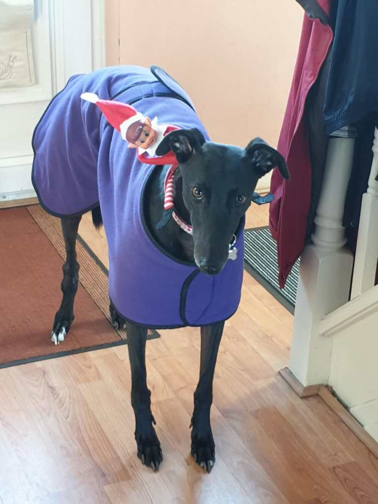 Thrilled for the day ahead, we went for a crisp, wintery walk at the local park, where he met lots of other excited doggies with new coats (albeit not all as silly as his). We met with his favourite girl grey, Stella, who coincidentally used to be his kennel-mate, and was adopted by our brother-in-law’s family! At the park, Niko did experience the slightly traumatic event of being suddenly mounted by a rather excited male Labrador – Niko is not much of an alpha you see… But, after hiding between my legs for a short time, he forgave the dog in question for the sake of Christmas and managed to finish his walkies without another ambush.
