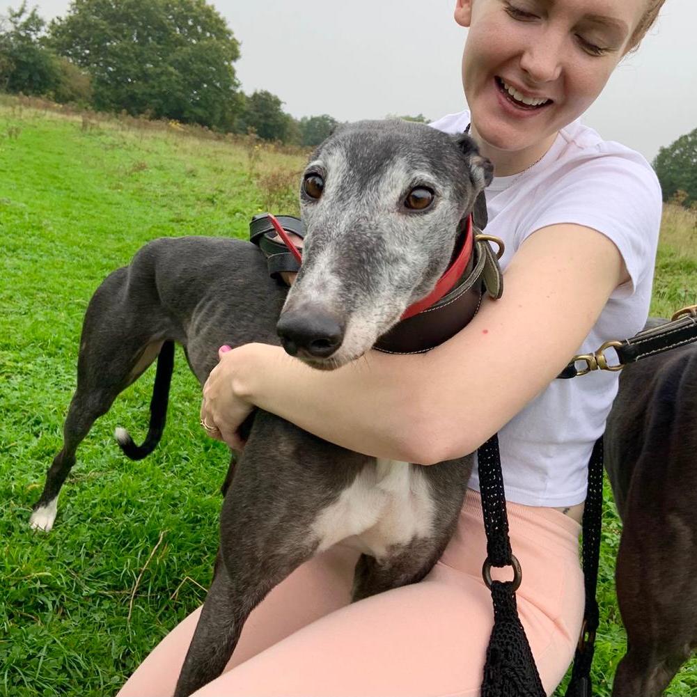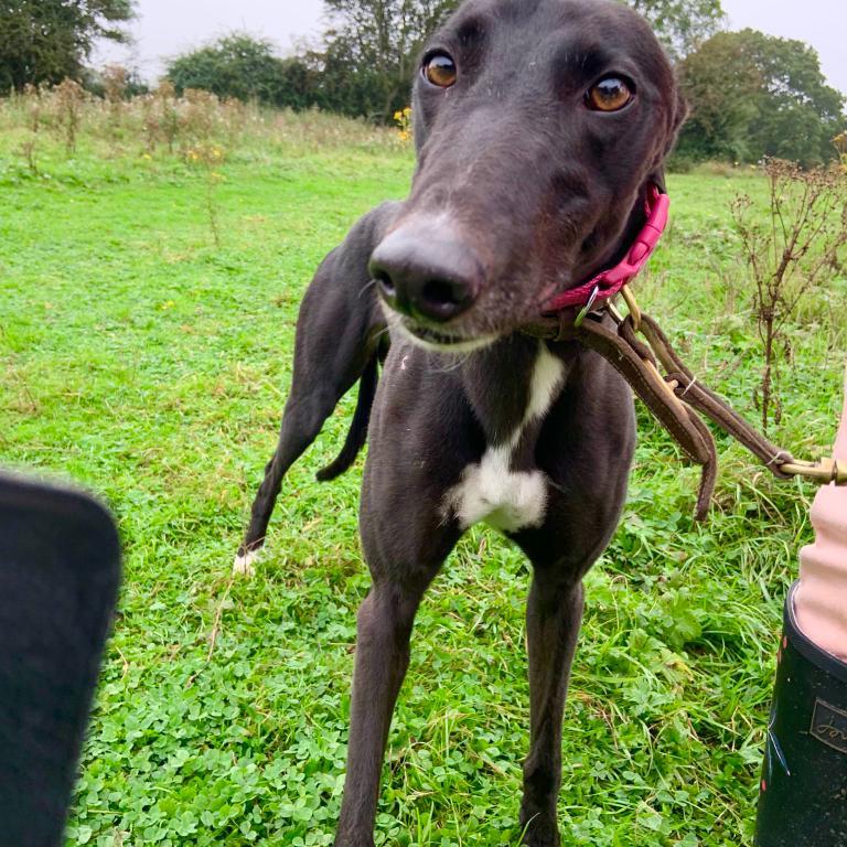Next, we have the stunning Pepper, with the frostiest of faces and imploring eyes! She is five years-old and is one of the most affectionate and loving greyhounds that I have ever had the pleasure of meeting. She loves nothing more than a snuggle with you and really loves to please. She still isn’t too sure of other dog breeds, but this is an area that she can work on; therefore, she would prefer to be the only dog at home – a perfect companion for a single person, a couple or a family with older children. This girl has been waiting for her forever home for a while now, often being overlooked, and we cannot work out why. Once you meet her, you are guaranteed to fall in love! It’s time she had her chance.