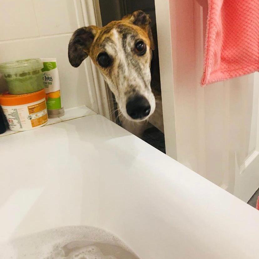 Now, first things first, generally we have found that every foster greyhound we have had in our care, including our own lovely boy, have taken to toilet training immediately. This is because these noodlehorses have led a kennel life and therefore they understand that outside means “toilet”. However, you cannot expect your sweet new pooch to necessarily understand what “outside” means in their new living arrangements straight away. As we live in an apartment, we must pop our greyhounds on a lead and physically take them out to their “toilet”, which is very similar to what they have already experienced during their kennel life. Therefore, in the first few days or even weeks of having their new lovely greyhound at home, we always advise to our foster dogs’ new homes to do the same – pop their lead on them every few hours, even if their new home includes a house and a garden, and physically take them to the garden and walk them around for a few minutes. When they produce the desired result… praise praise praise! Soon, they should learn that this is their toilet space. Of course, accidents are likely to happen during the first few weeks, particularly if your snoot is rather nervous, so please be patient. Give them time.