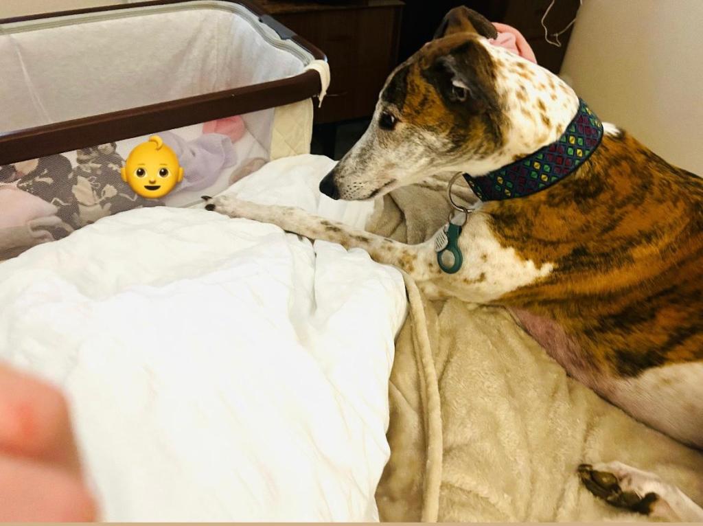 Hello, everyone! It is so lovely to be writing again after a hiatus following the birth of our child. For this reason, I thought to myself… What better topic to reignite Berry’s Wonder Hounds with than sharing our experience of introducing our baby to our gorgeous snooty, Niko? This is something that did cause me some worry before our child was born and my mind would fret with a myriad of concerns – Would Niko take to the baby? What if he did not accept him/her? What if he felt forgotten about? Would my relationship with him change? Therefore, I thought the following tips, which worked for us, might be useful for anyone with a greyhound (or any other dog), who is perhaps expecting a child or considering growing their family in the future.